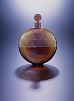 第3章は「ヴィーナスたちのファッション」。アール・デコ時代の女性のファッションはそれまでと大きく変わりました。アール・ヌーヴォーの女性のスカート丈は長く、ヘアスタイルも長髪であるのに対して、アール・デコ時代のスカート丈は短く、髪もショートヘアが流行します。ここでは、同時代のグラフィックデザイン、ドレス、ジュエリー、香水瓶等を展示し、アール・デコ時代の理想的な女性像“ヴィーナス”たちの特徴が紹介されています。