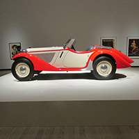 ヒストリックカー BMW 315/1 《ロードスター》(1935年、堺市・堺市ヒストリックカー・コレクション)に加え、《ハロー!いつブリドリントンにくるの》(1930年、サントリーポスターコレクション[ [大阪中之島美術館寄託])も。