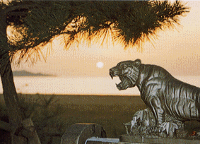 ここから見る夕陽は四季を問わず素晴らしいけれど、秋から冬の夕景は特に絶景。オレンジ色に燃える夕陽、蒼から茜色に変化する播磨灘の海原、真紅の残照に映える慶野松原。自然界が作成するこのコントラストは、本物の芸術作品のすごさを実感させる。